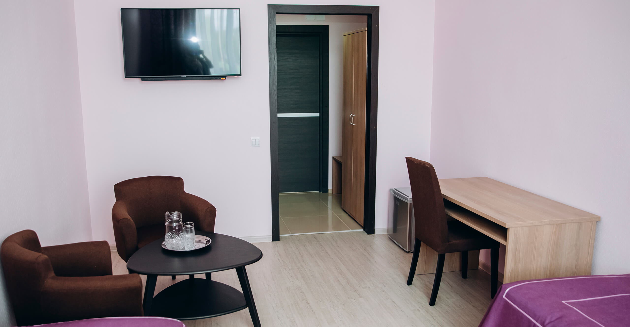 - Удобства: Бесплатный Wi-Fi, Душевая кабина, Телевизор, Уборка, Холодильник